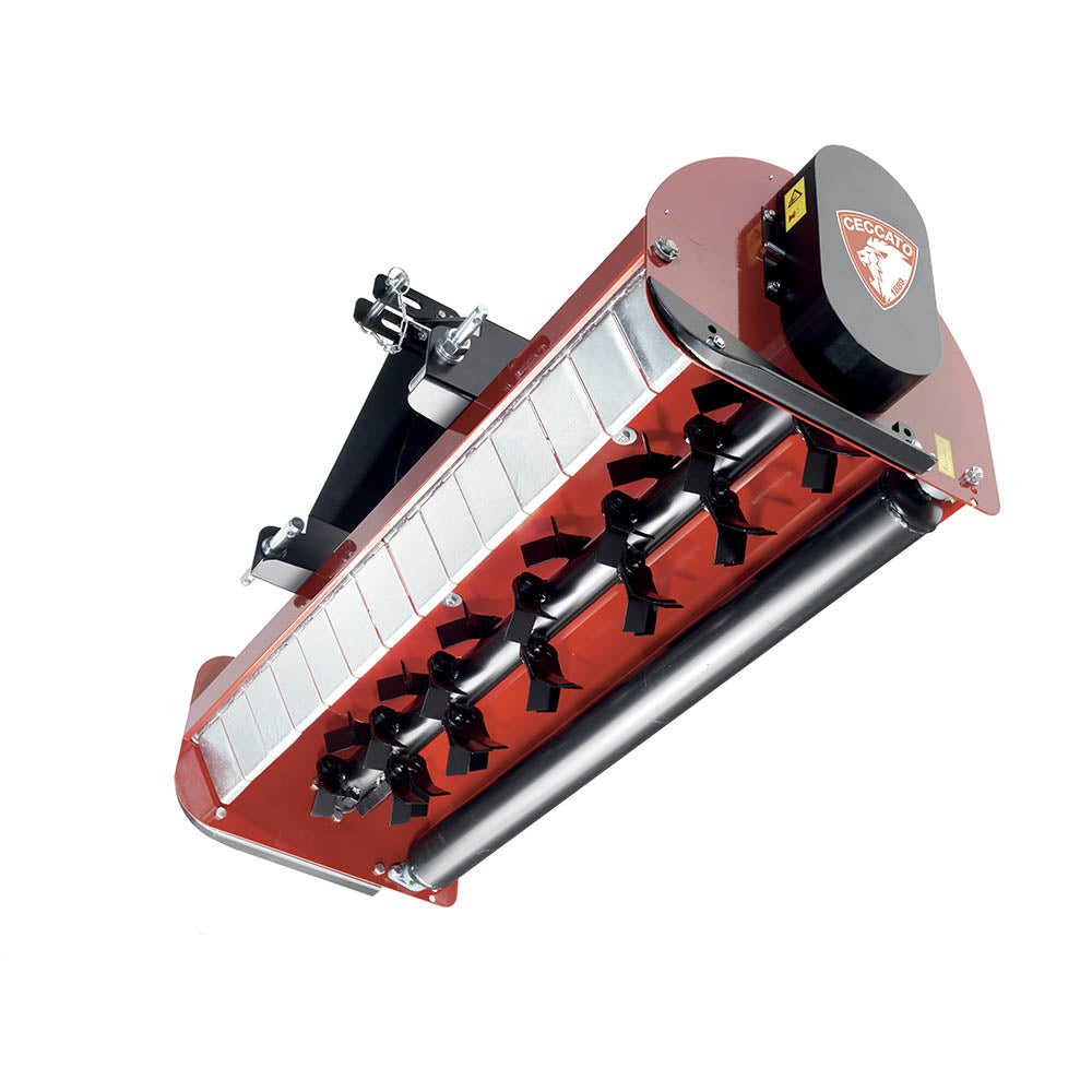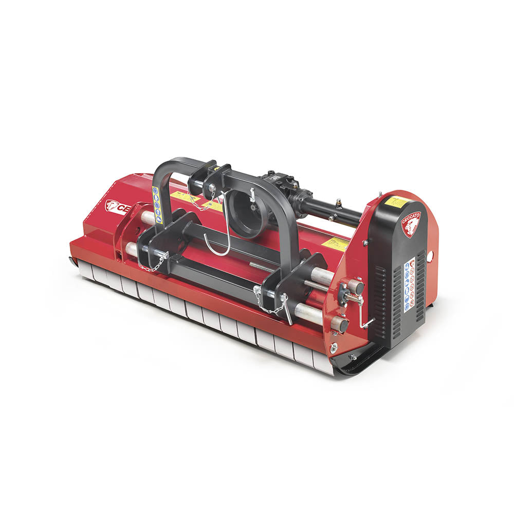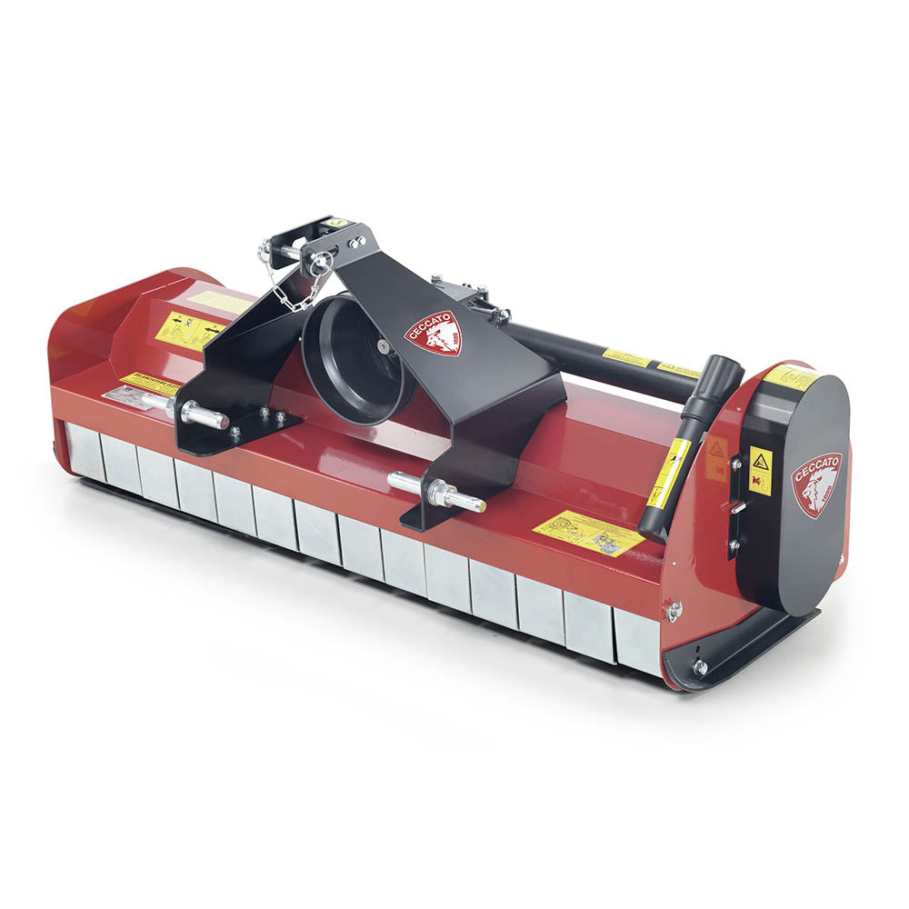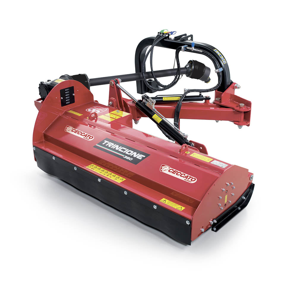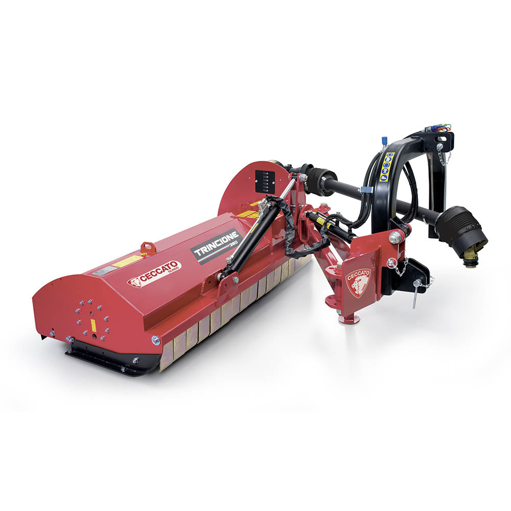 The Drag Flails range (Ceccato’s Trincione line) are professional tractor-mounted flail mowers designed for cutting and mulching grass, weeds, crop residues, orchard prunings, roadside vegetation, and even small shrubs. They attach via the tractor’s three-point hitch and are powered by the PTO.