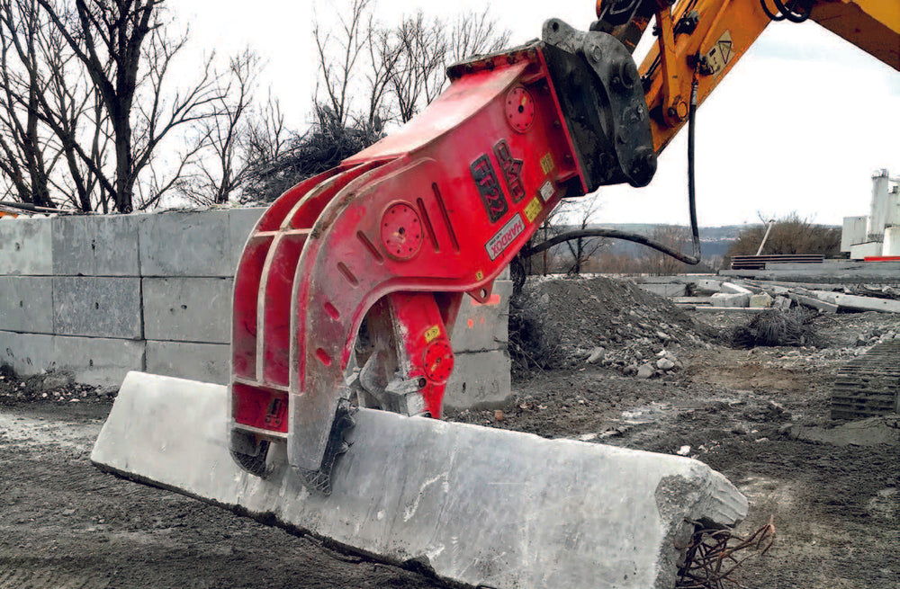 In use, the tool is aimed at ground-level demolition and “clean-up” work: taking down remaining sections of surrounding walls and medium-height vertical elements, breaking pavements and floor plates, and separating steel rebar from crushed concrete as it goes. Because it’s a fixed (non-rotating) pulveriser, operators typically position the excavator body and boom to line up each bite, then use repeated clamp-and-crush cycles to progressively reduce material size. This makes it especially effective where consistent, high-force crushing is needed and where the end goal is a more uniform, transport-friendly product for recycling streams.